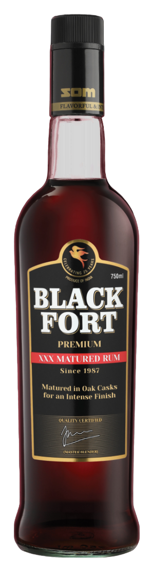 Black Fort Rum is a classic blend of distilled sugarcane juice spirit. Dark rum with 42.8% alcohol content and 57.2% ecstasy, this full-bodied, rich rum is smooth and mellow on your palate. It is for mature consumers who love bold exploration.